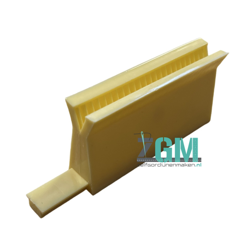 Geel kunststof 74 mm lang x 38 mm hoog x 17 mm breed